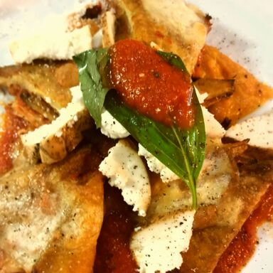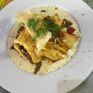| Ravioli ricotta e spinaci Teigtaschenl Ricotta und Spinatfüllung in Butter-Salbei- Sauce oder Tomatensauce | 18,00€ |